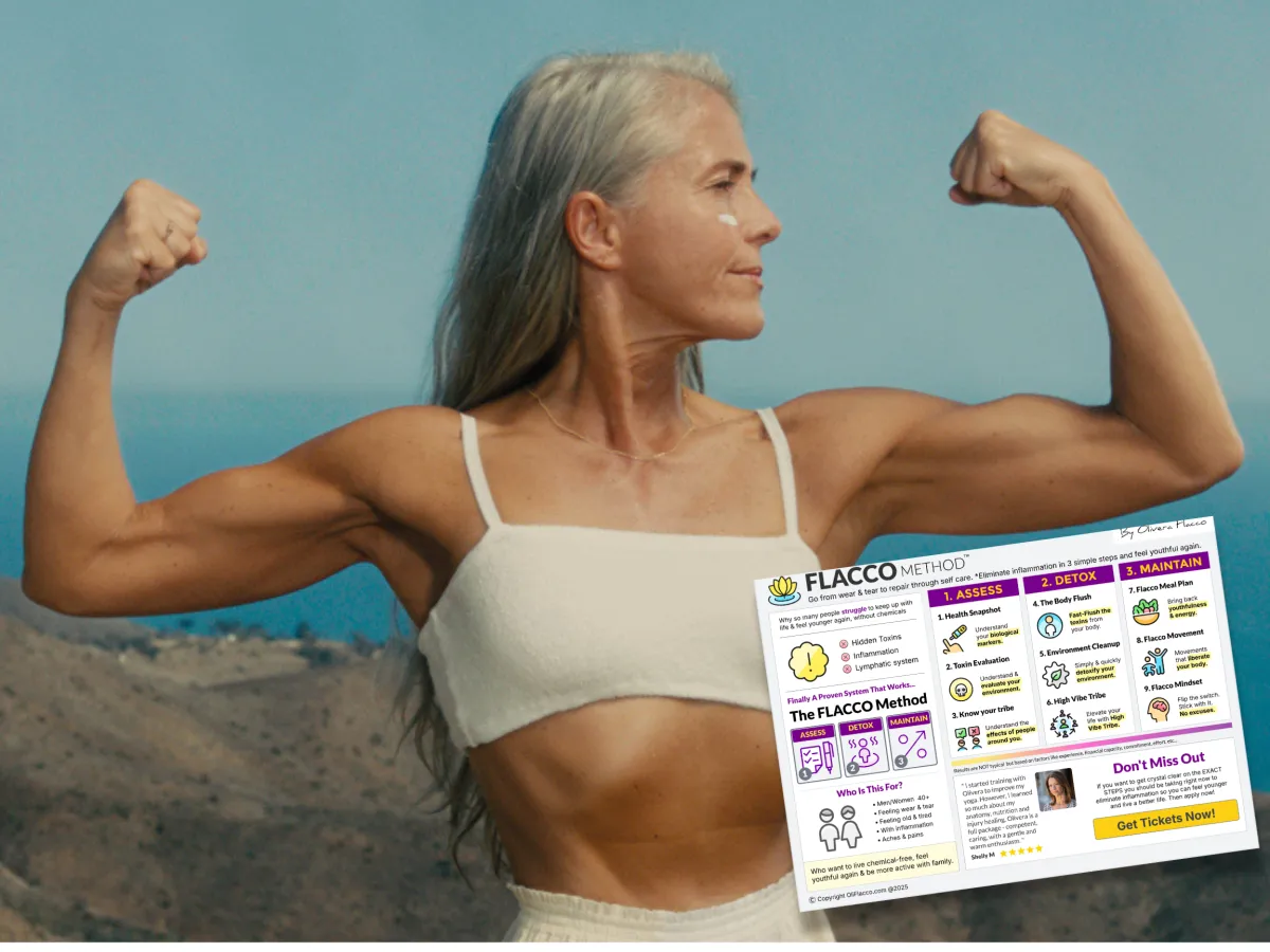 Hi My name is Olivera Flacco and I help empty nesters over 50 rapidly release nagging aches & pains caused by compound inflammation so they can feel 20+ years younger within 30 to 60 days using my Flacco Method.